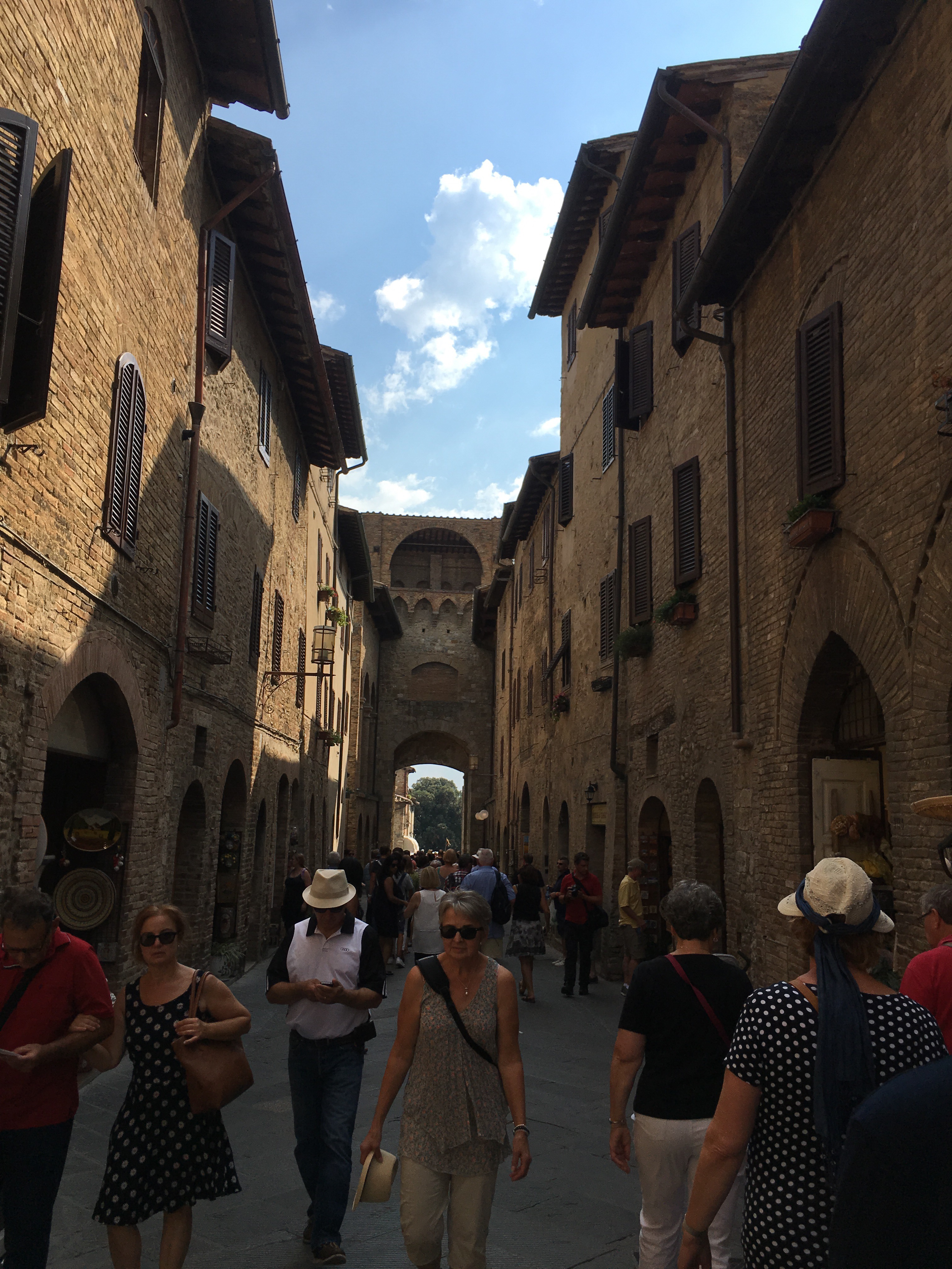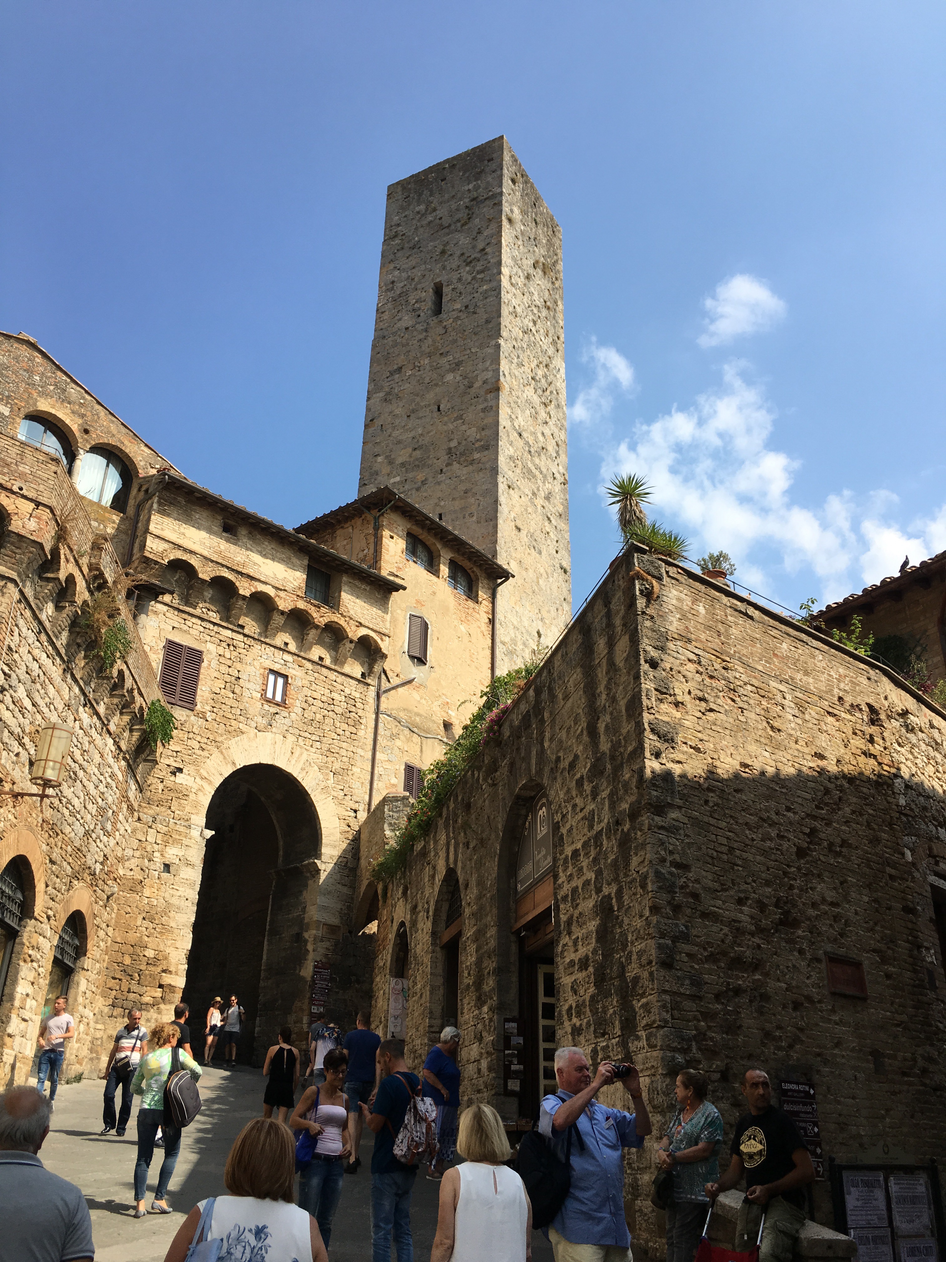 One of my favorite places so far has been our next stop, the hilltop town of San Gigminano. Just ancient and beautiful. I can’t explain how content it makes me feel to spend time visiting these towns, wandering these cobblestone streets and seeing the sun-soaked buildings. Coming from such a young country it’s as though I have been starved for this feeling of history and antiquity. We only had an afternoon but had plenty of time to sit in the sun, eat wild boar ragu and smooth creamy gelato.
